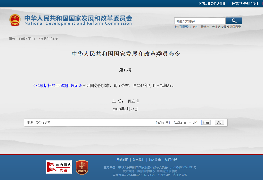 《必須招標的工程項目規(guī)定》已經(jīng)國務院批準,現(xiàn)予公布,自2018年6月1日起施行。