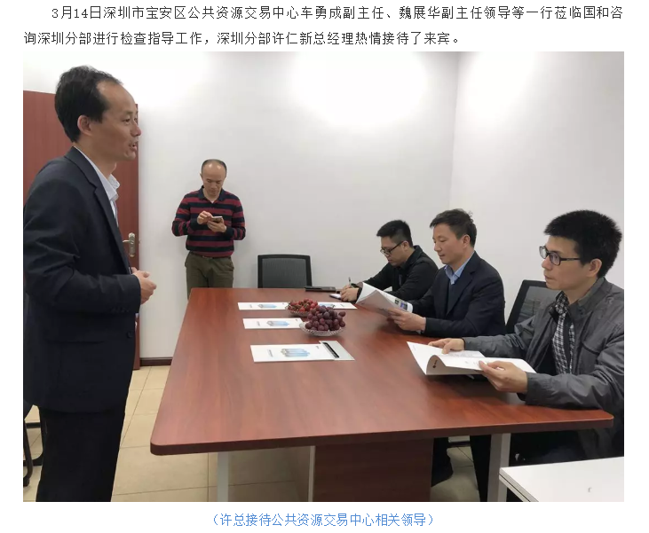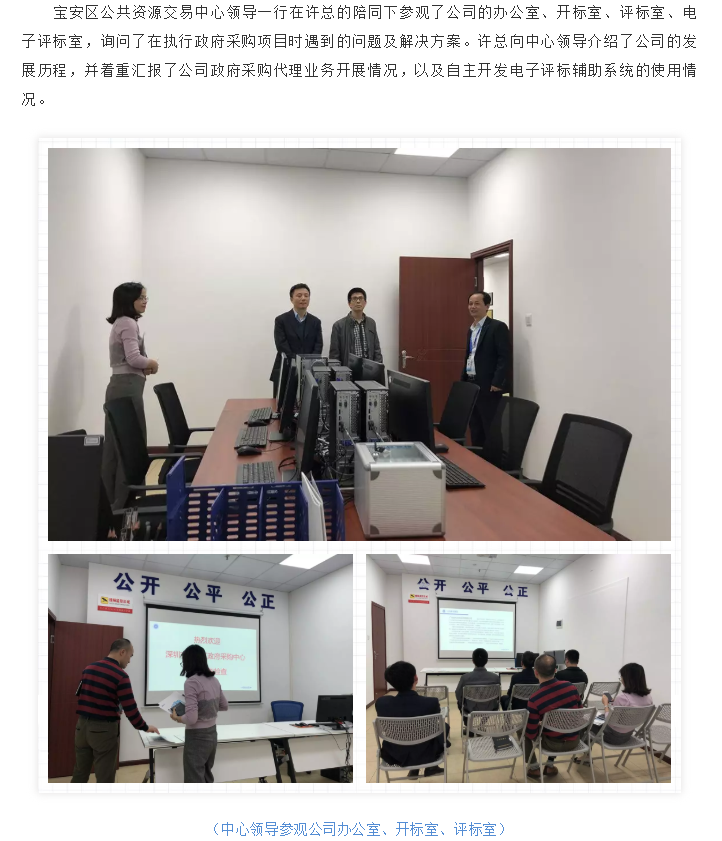深圳市寶安區(qū)公共資源交易中心領(lǐng)導(dǎo)蒞臨我公司檢查指導(dǎo)工作