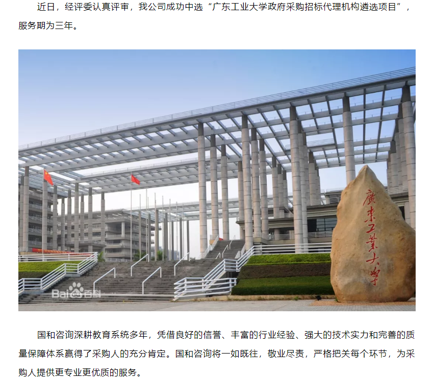我公司成功中選“廣東工業(yè)大學(xué)政府采購招標(biāo)代理機構(gòu)遴選項目”