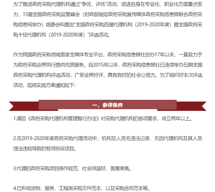 全國政府采購百強代理機構(gòu)(2019-2020年度)暨全國政府采購十佳代理機構(gòu)(2019-2020年度)評選活動啟動