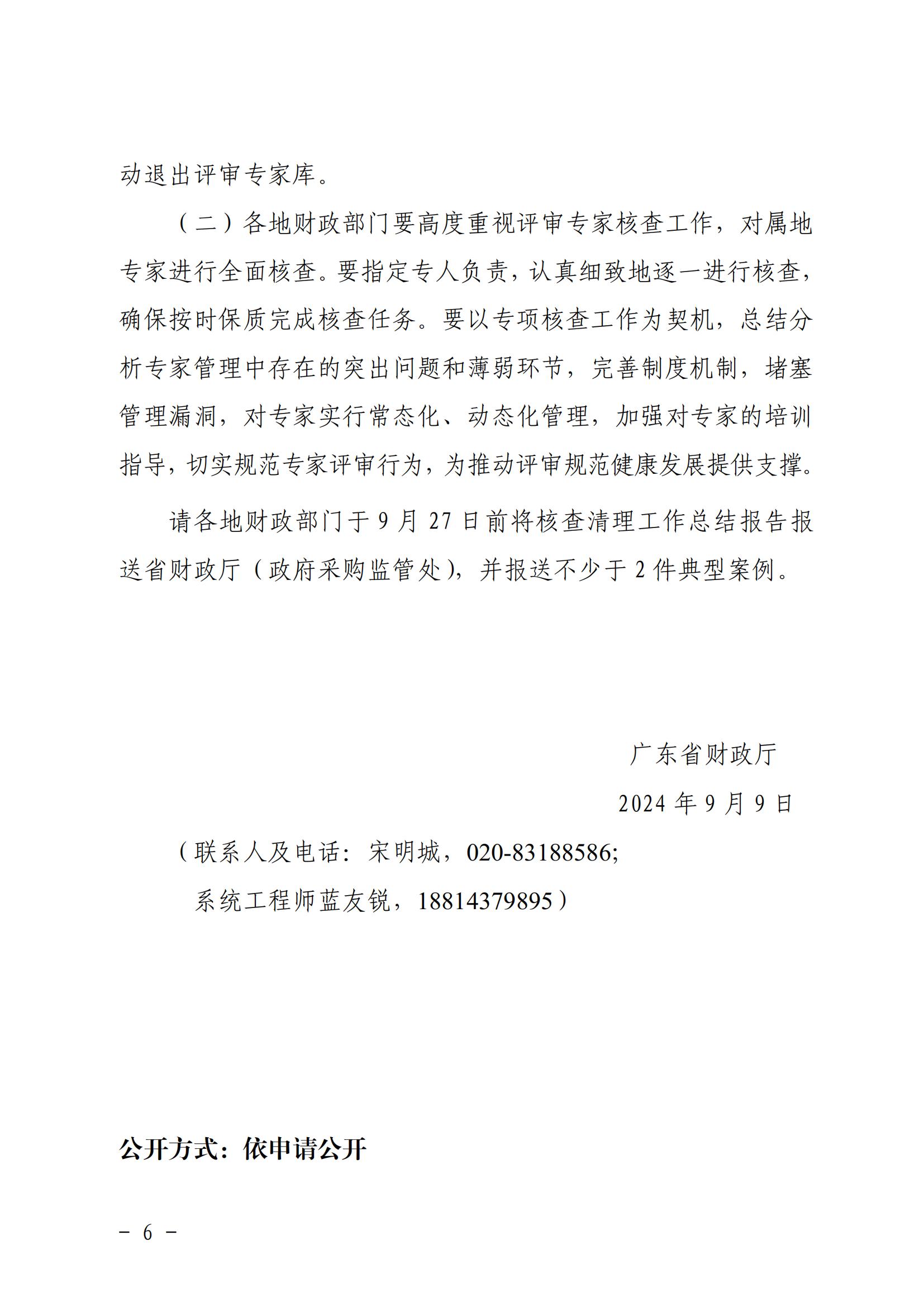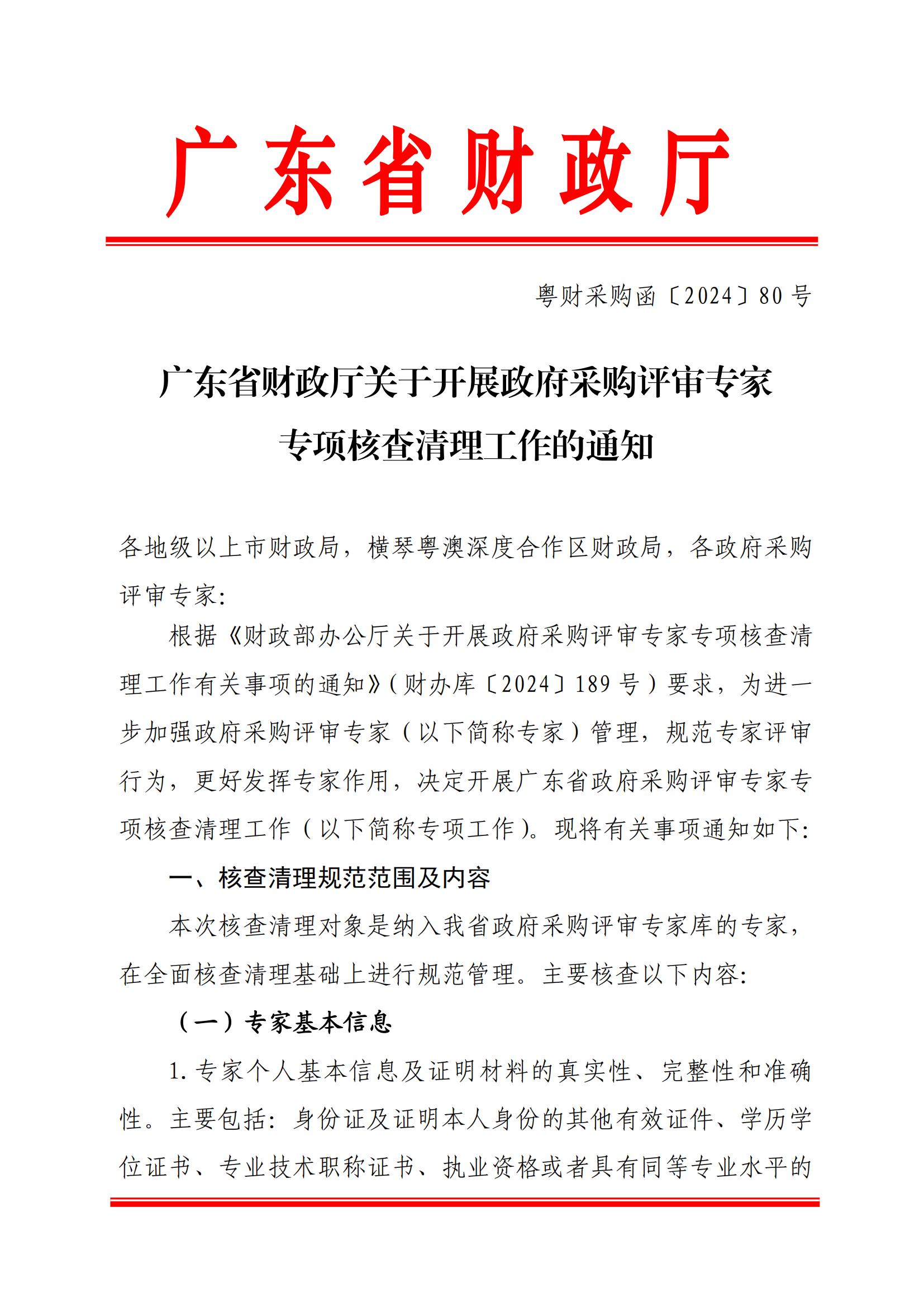 廣東省財政廳關(guān)于開展政府采購評審專家專項核查清理工作的通知